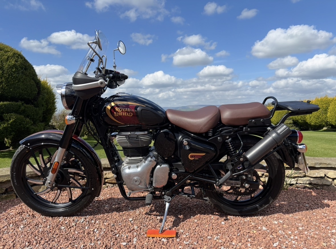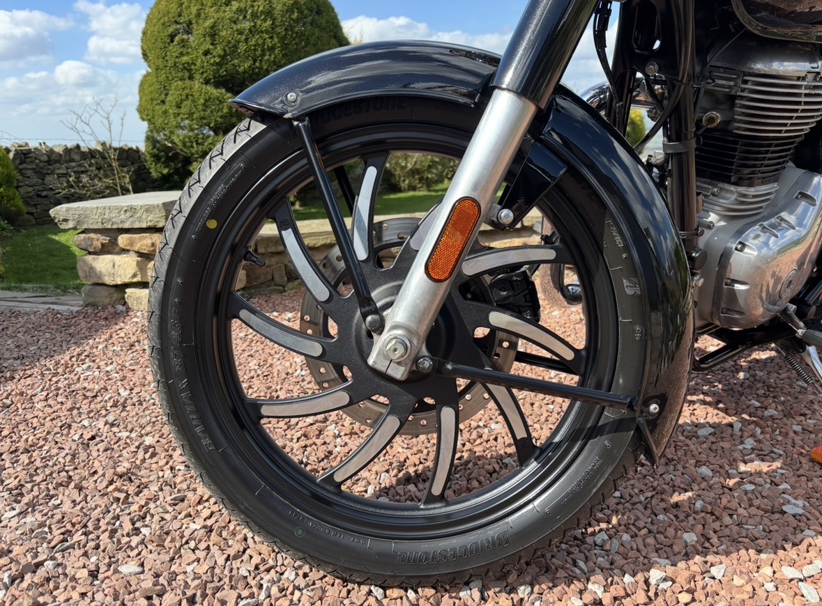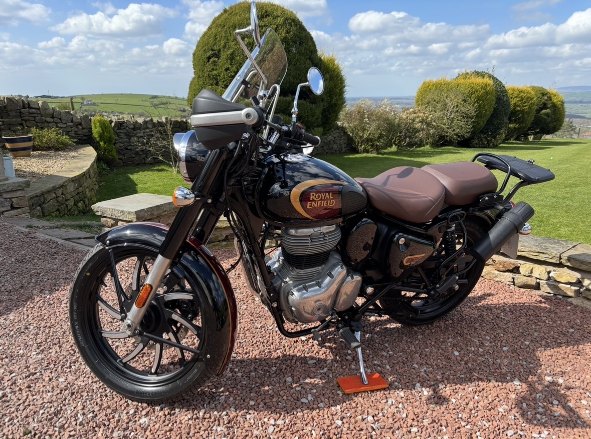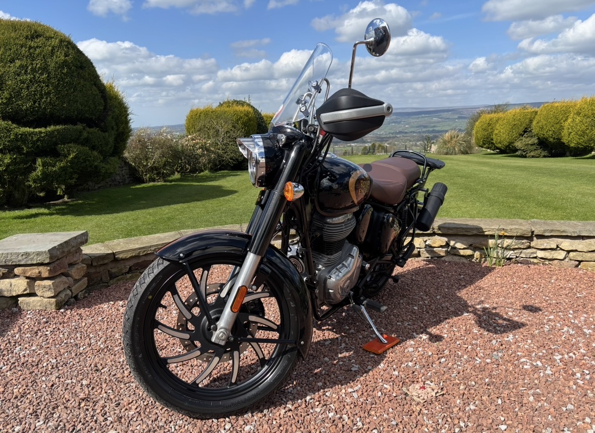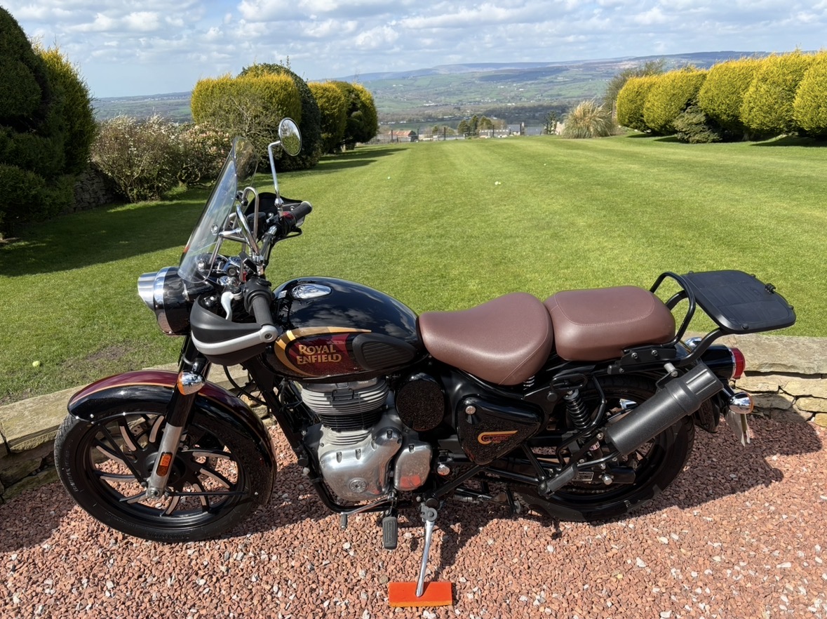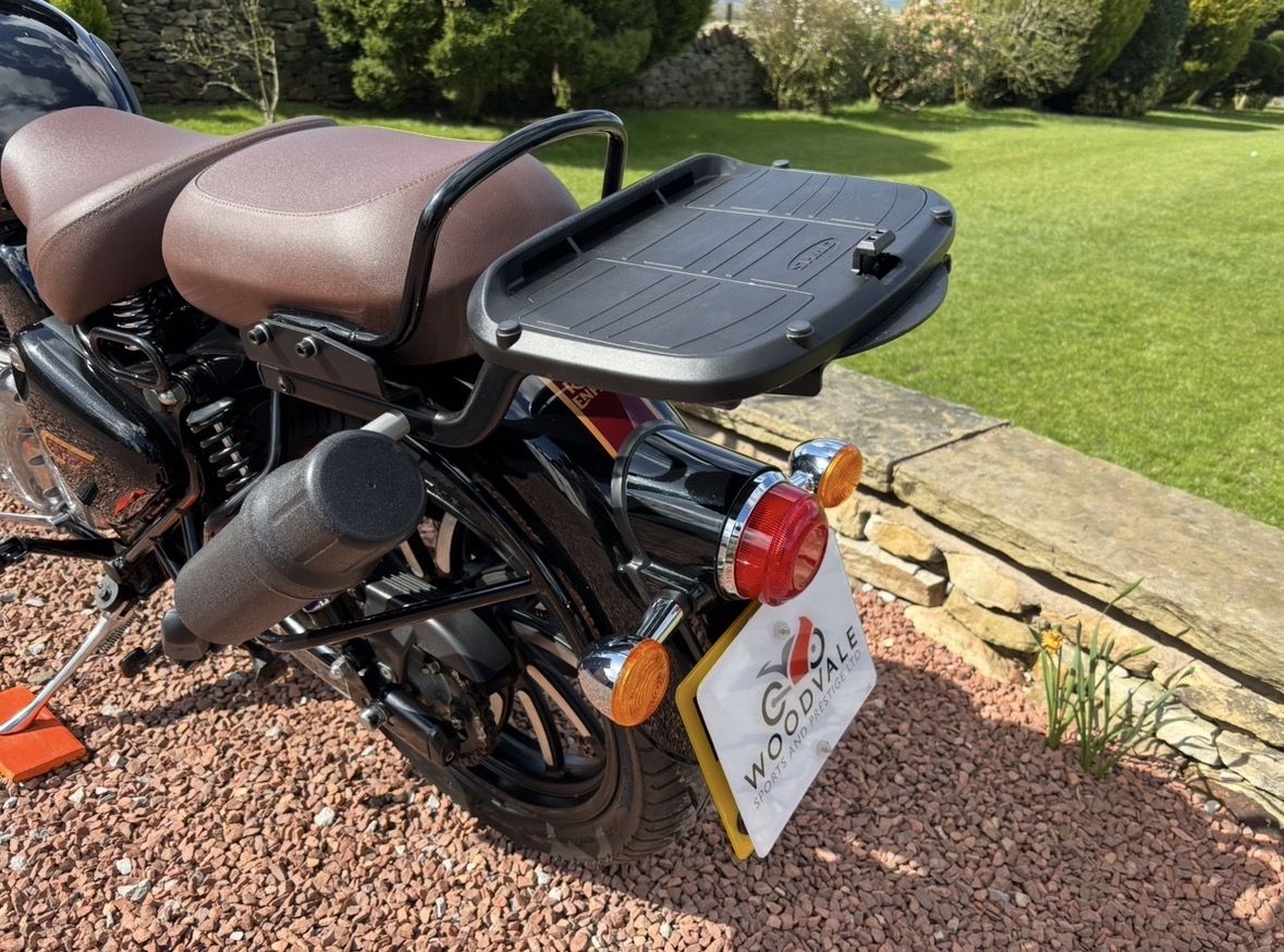 349cc, 5 Speed, Metallic Black, ABS Brakes, Side/Centre Stands, RE Hand Guards, RE Touring Screen, RE Type 2 Alloy Wheels with new Bridgestone tyres, RE Side Mounted Tool Box, Oxford Heated Grips, Shad Top Case and Carrier, Upgrade Hagon Shocker Conversion, RE Extended Mirrors, 2 x Keys and all docs etc supplied.