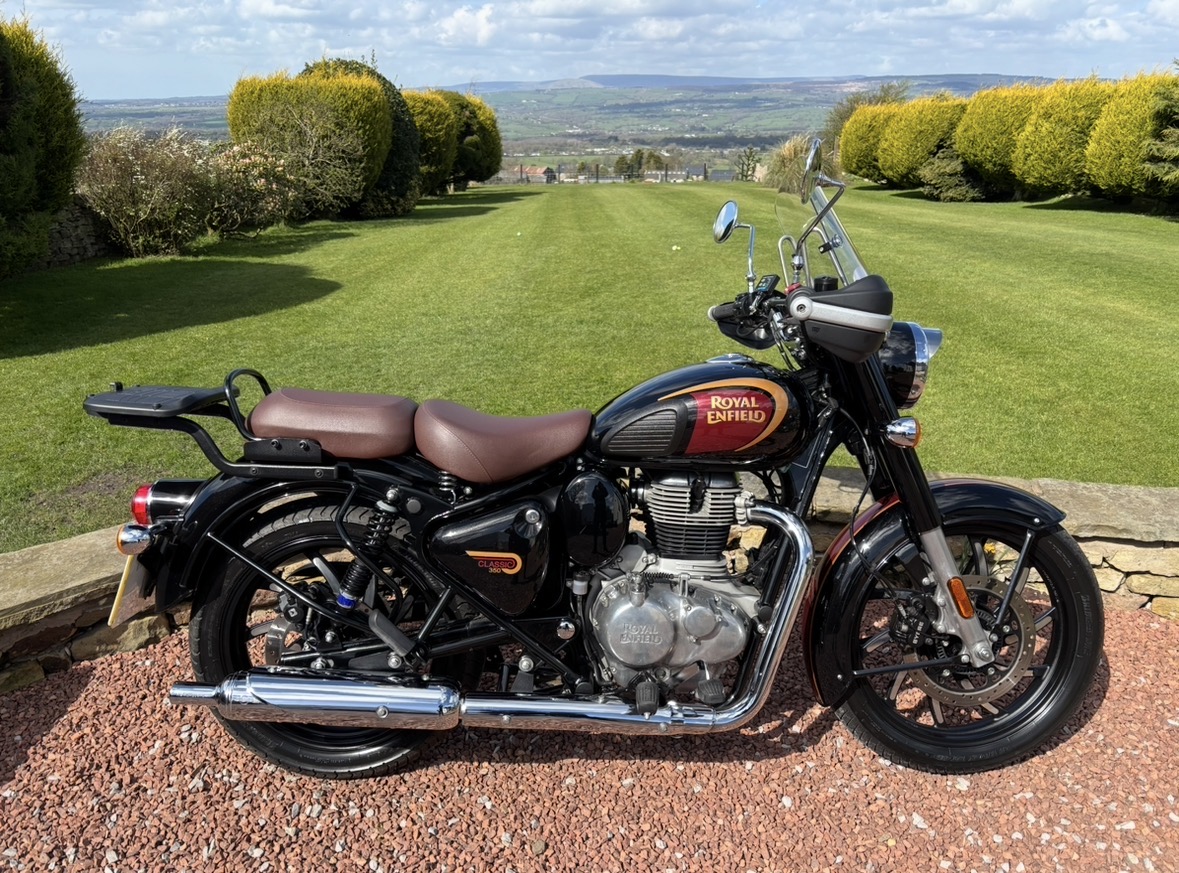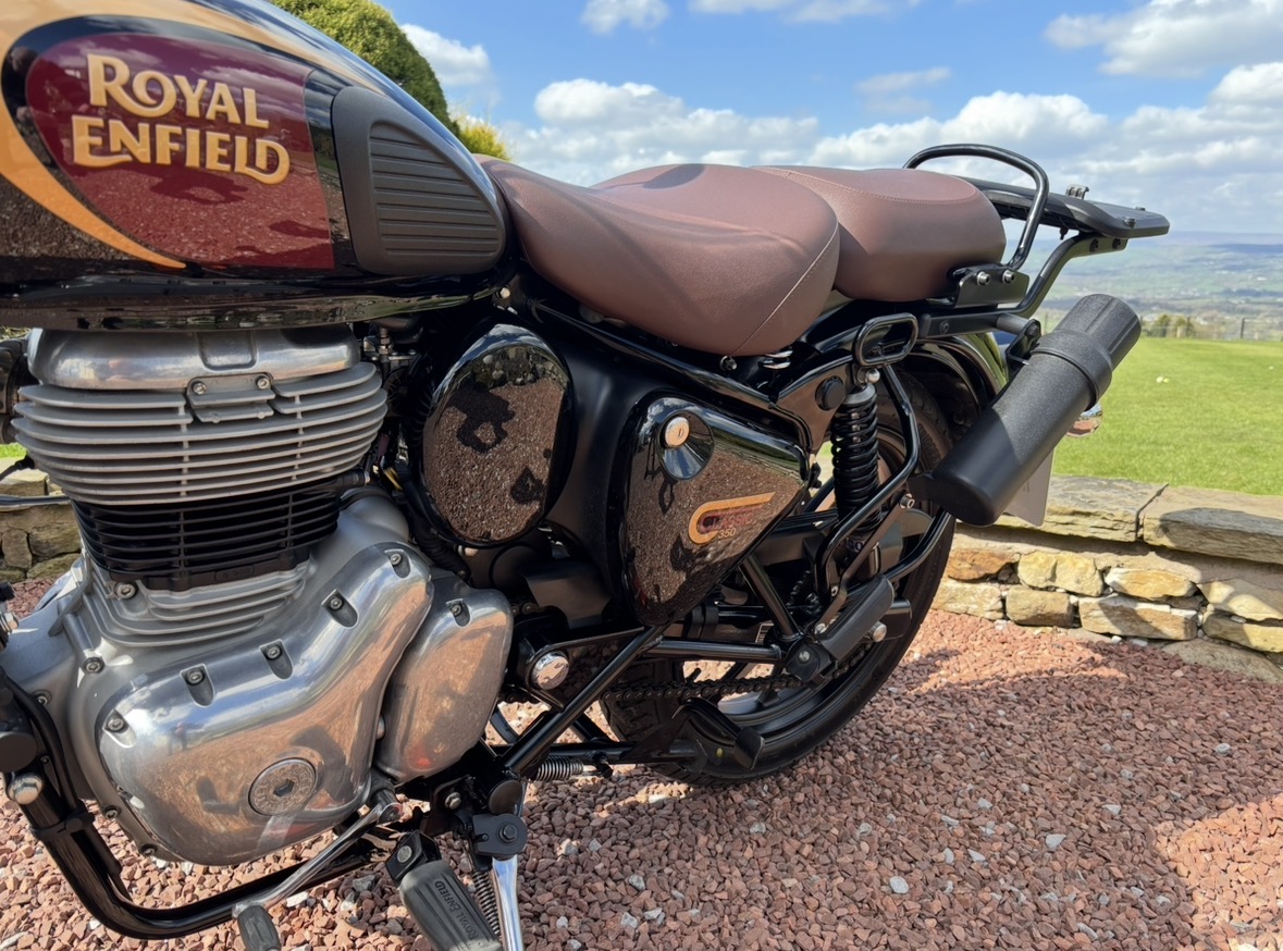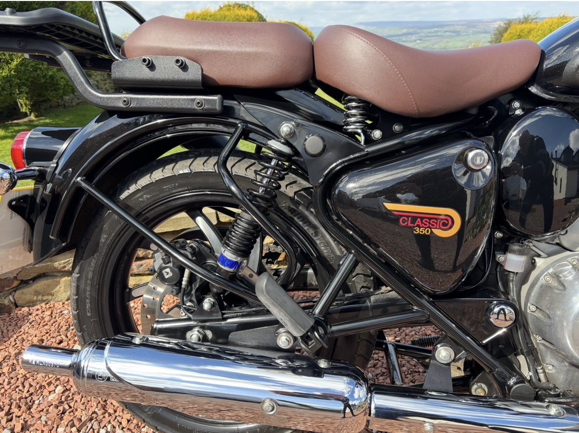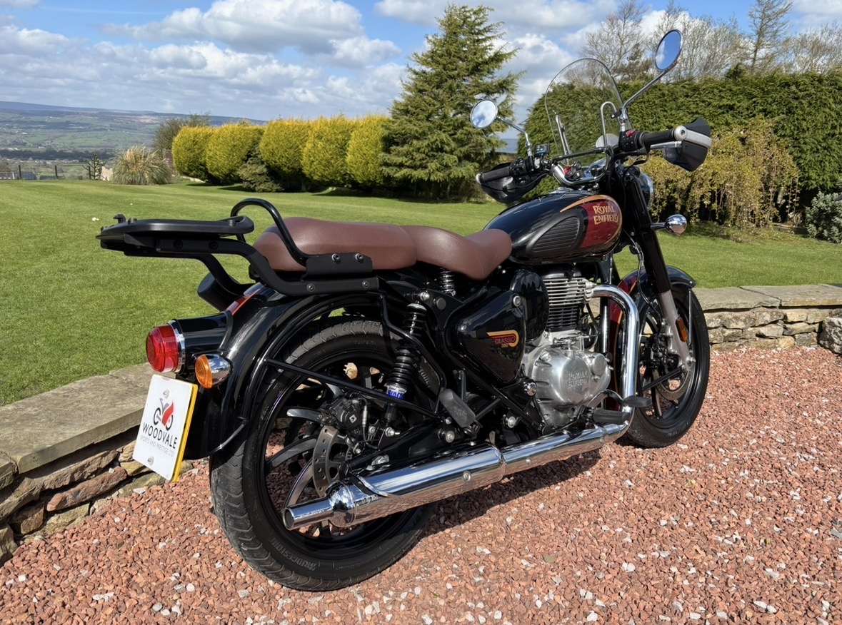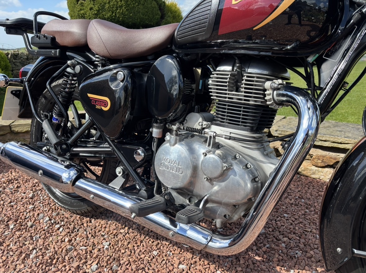 349cc, 5 Speed, Metallic Black, ABS Brakes, Side/Centre Stands, RE Hand Guards, RE Touring Screen, RE Type 2 Alloy Wheels with new Bridgestone tyres, RE Side Mounted Tool Box, Oxford Heated Grips, Shad Top Case and Carrier, Upgrade Hagon Shocker Conversion, RE Extended Mirrors, 2 x Keys and all docs etc supplied.