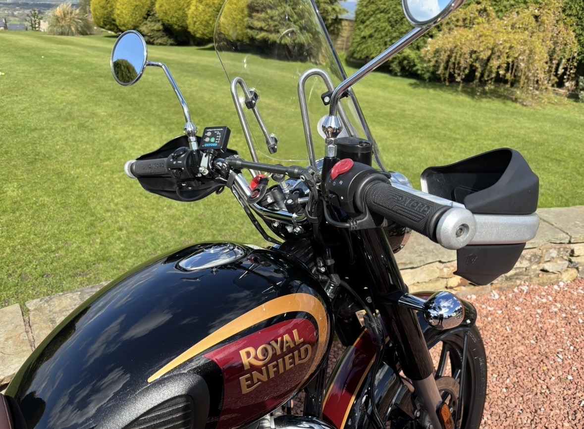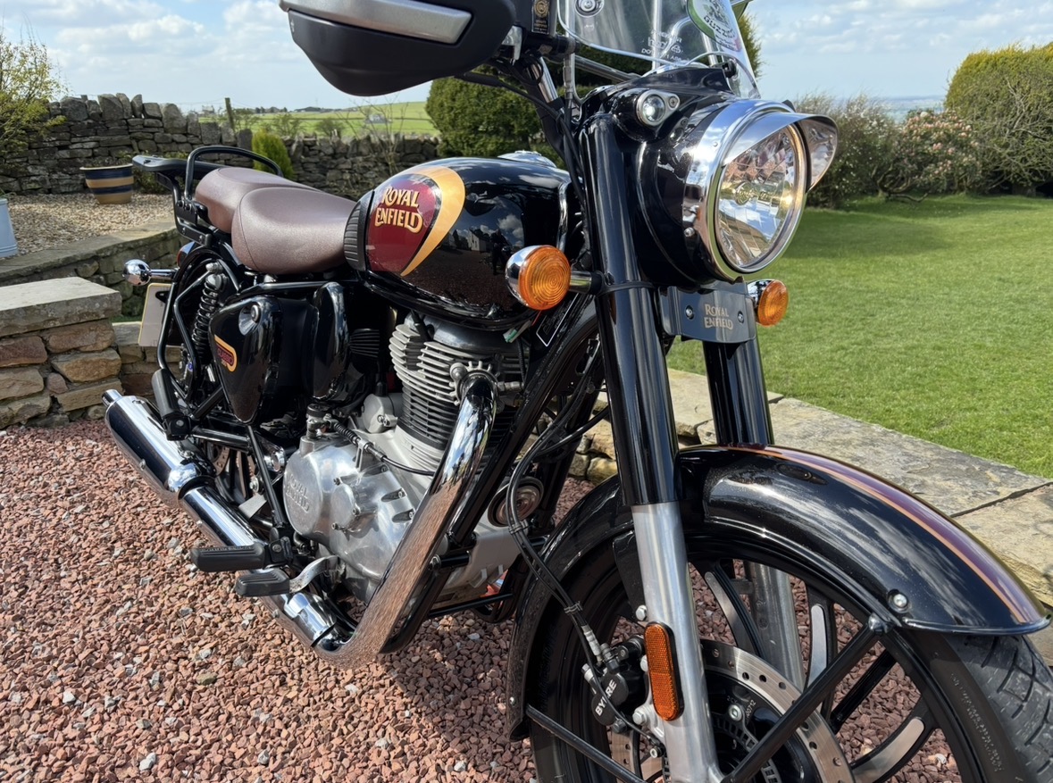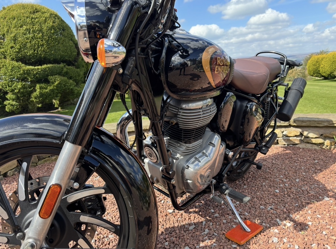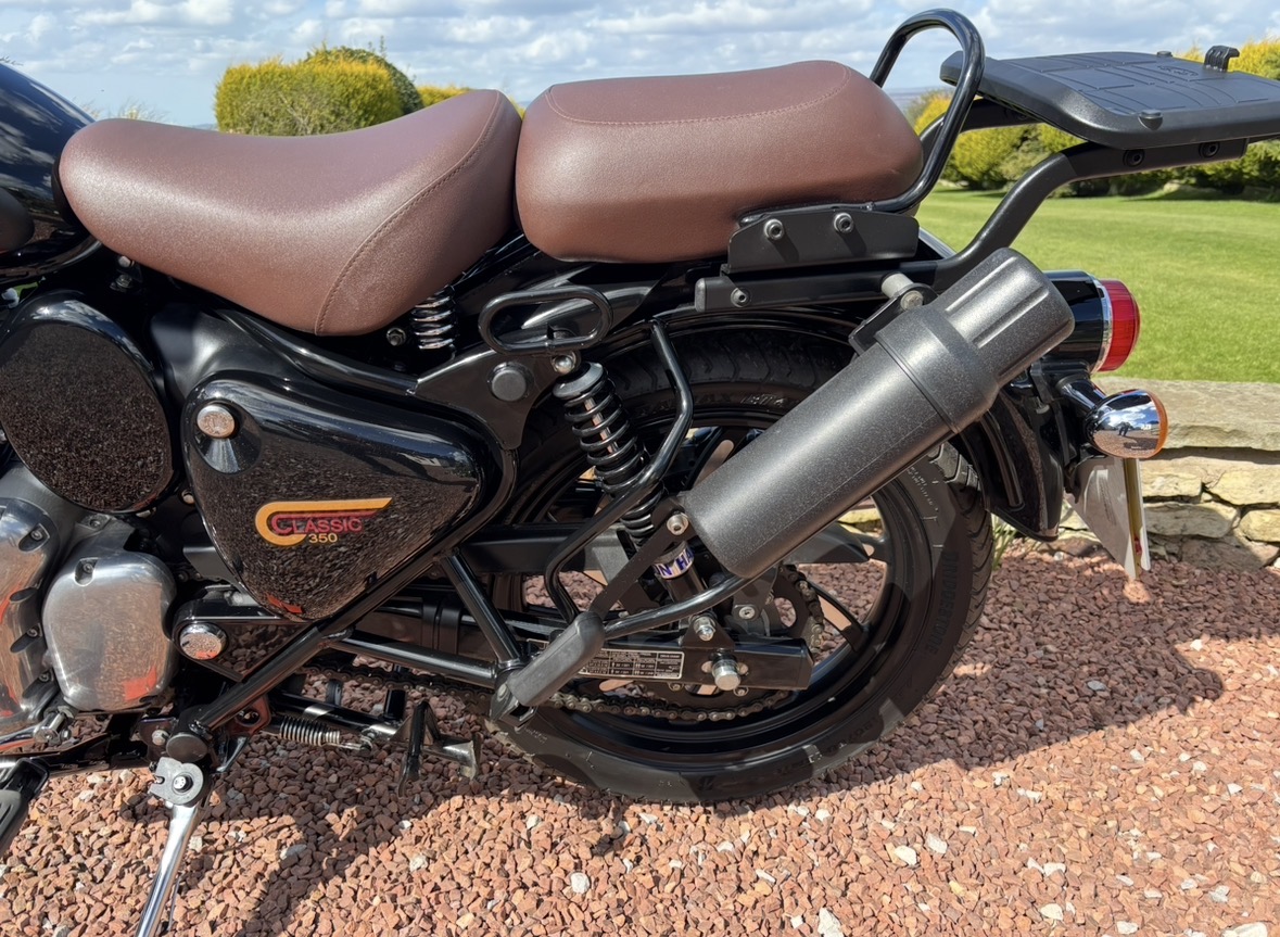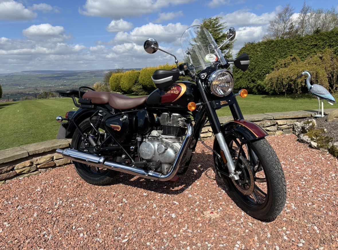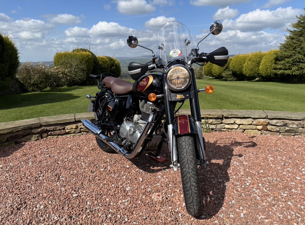 349cc, 5 Speed, Metallic Black, ABS Brakes, Side/Centre Stands, RE Hand Guards, RE Touring Screen, RE Type 2 Alloy Wheels with new Bridgestone tyres, RE Side Mounted Tool Box, Oxford Heated Grips, Shad Top Case and Carrier, Upgrade Hagon Shocker Conversion, RE Extended Mirrors, 2 x Keys and all docs etc supplied.